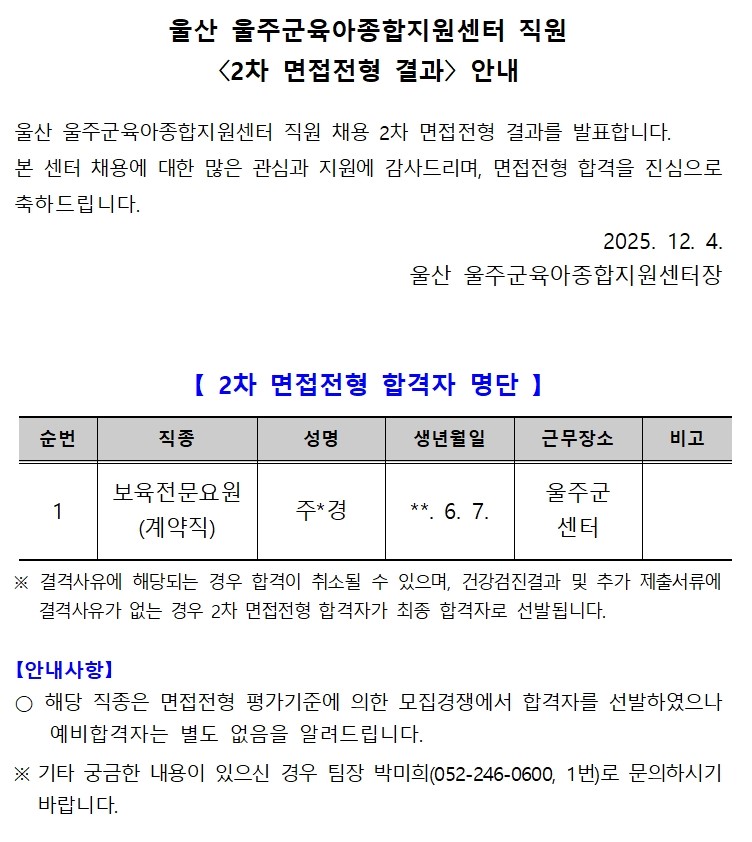 | [ä¿ë] º» ¼¾ÅÍ Á÷¿ø(º¸À°Àü¹®¿ä¿ø) ä¿ë [2Â÷ ¸éÁ¢ÀüÇü °á°ú] ¾È³» | |||||