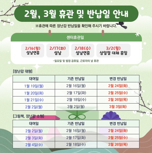 [¿î¿µ] 2¿ù, 3¿ù ¼¾ÅÍ ÈÞ°ü ¹× ¹Ý³³ÀÏ ¾È³»