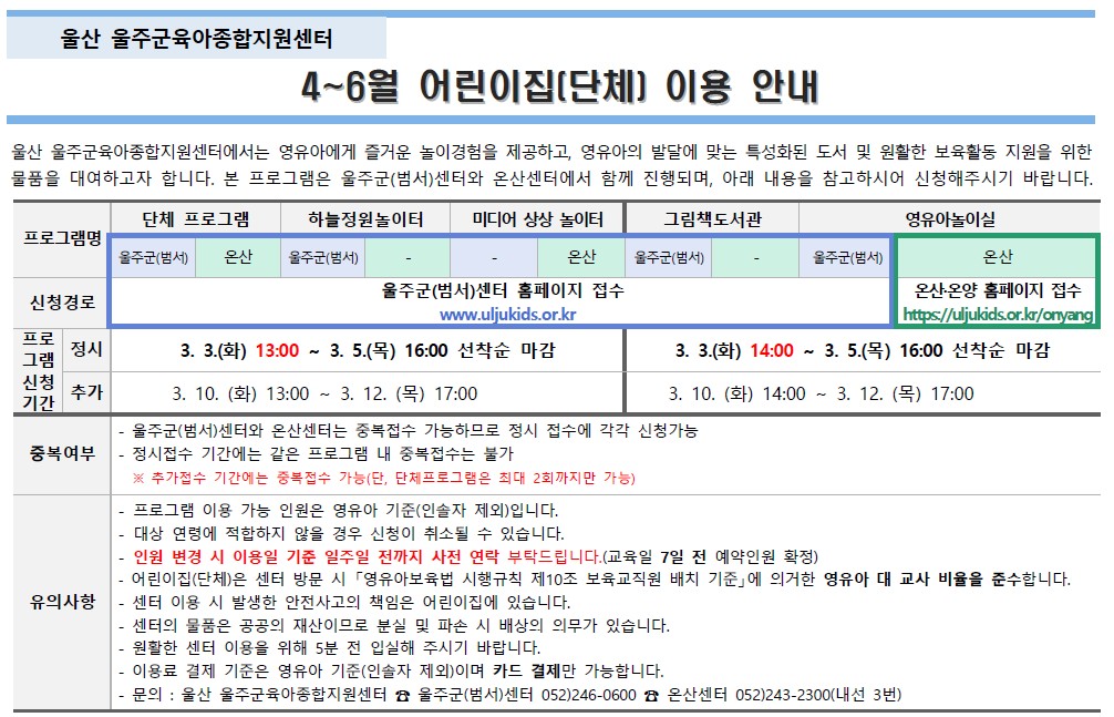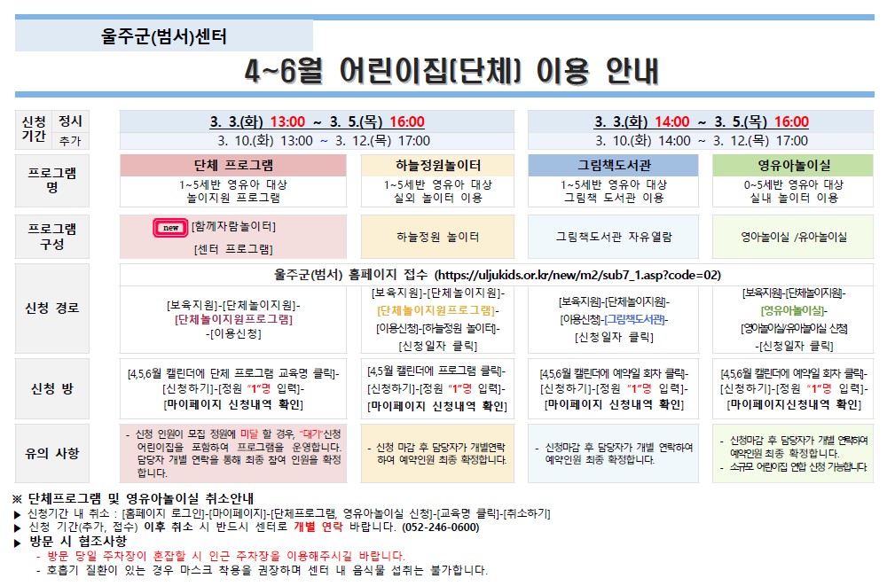 | [´Üü ÇÁ·Î±×·¥] 2026³â 4~6¿ù ¾î¸°ÀÌÁý ÀÌ¿ë¾È³»ÀÔ´Ï´Ù. | |||||