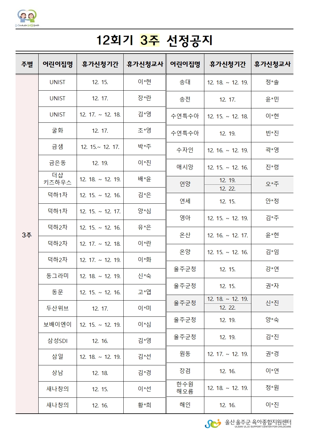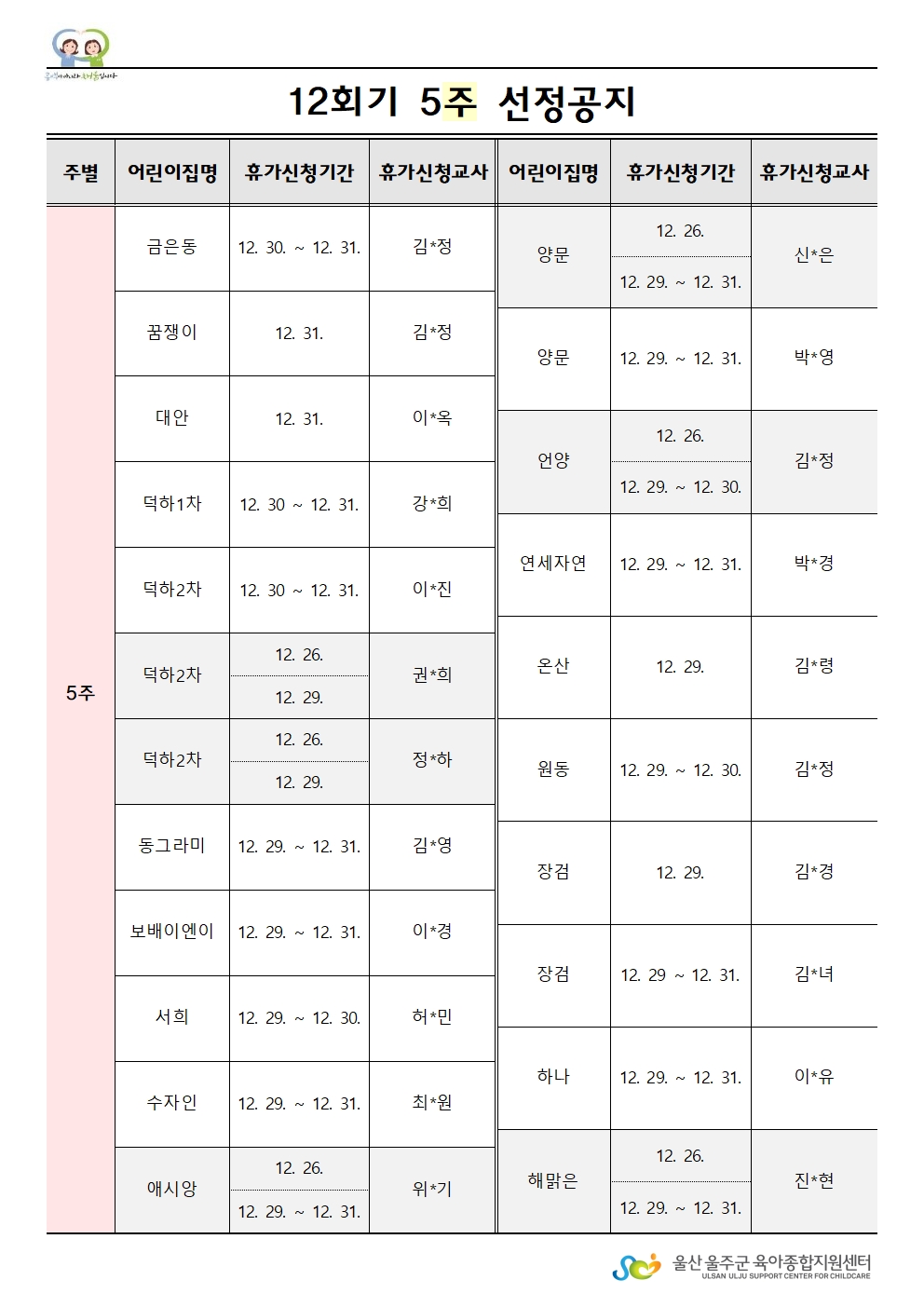 | [¼±Á¤¾î¸°ÀÌÁý°øÁö] 2025³â ´ëü±³»çÁö¿ø»ç¾÷ 12ȸ±â ¼±Á¤¾î¸°ÀÌÁý °øÁö | |||||