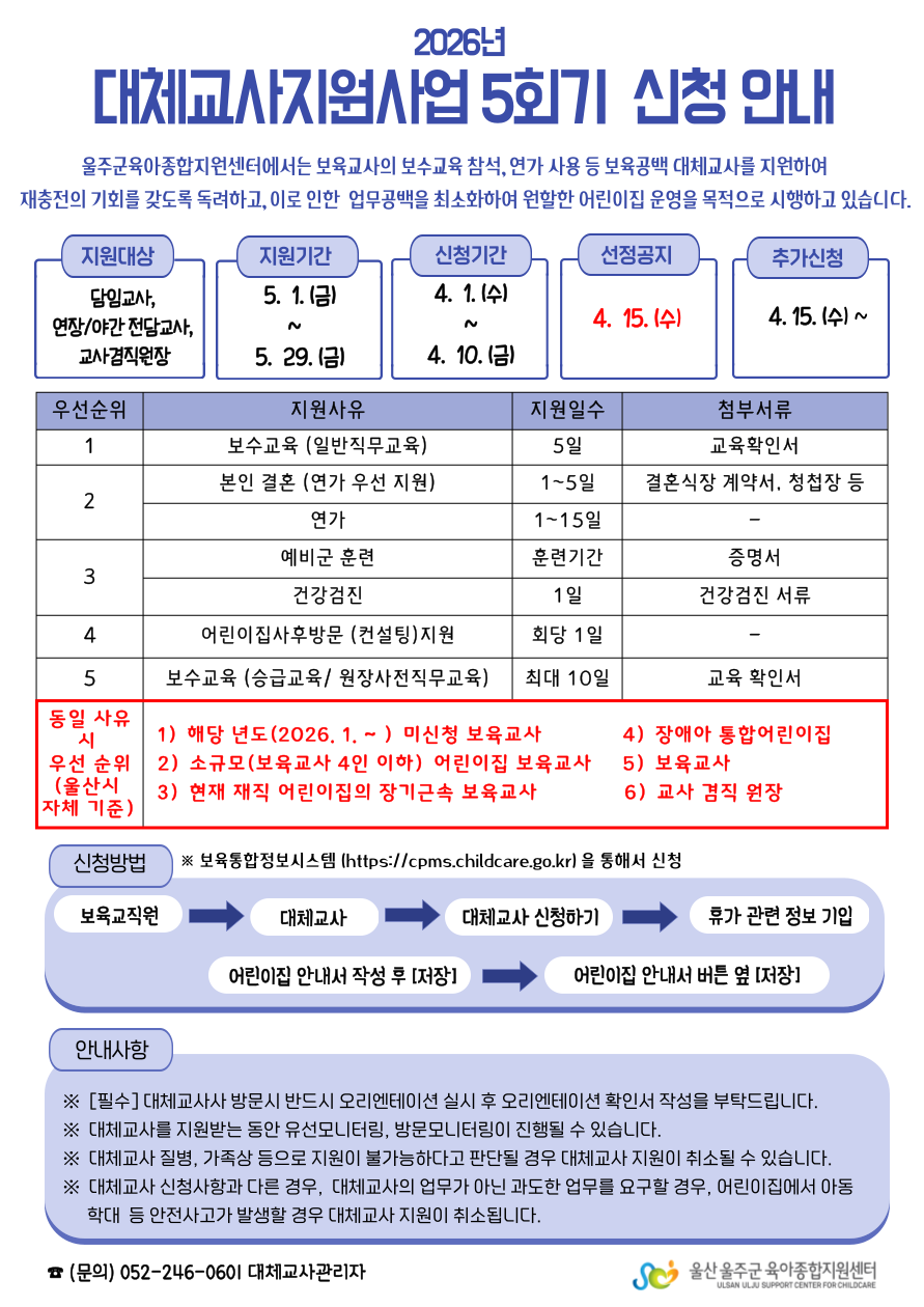 | [½Åû¾È³»] 2026³â ´ëü±³»ç Áö¿ø»ç¾÷ 5ȸ±â ½Åû¾È³» | |||||