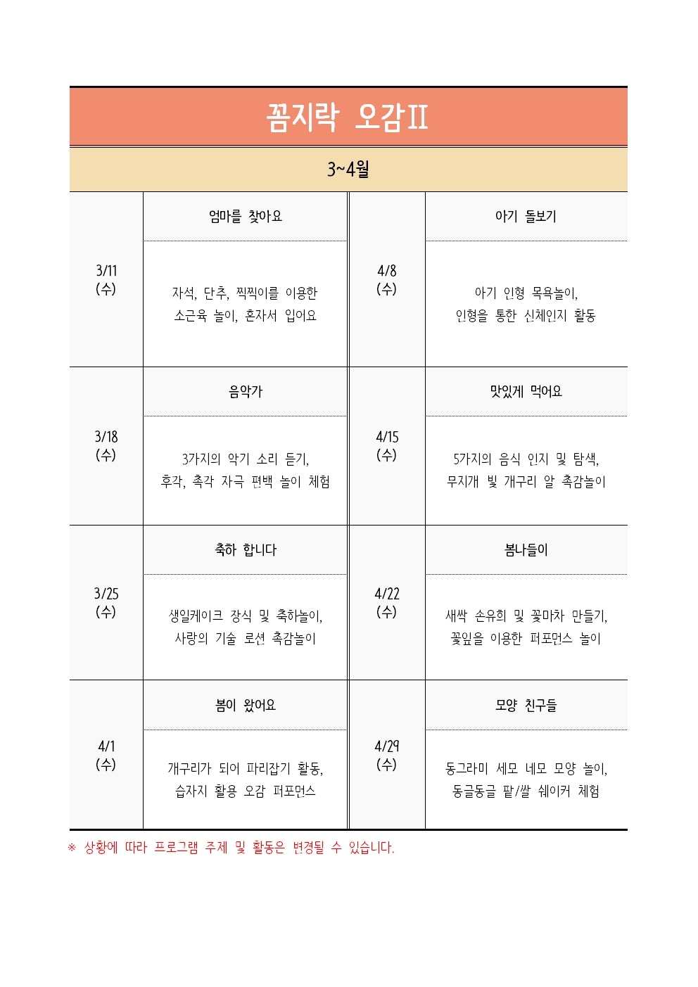 | ±³À°ÀϽà | 2026-03-11(¼ö) , 2026-03-18(¼ö) , 2026-03-25(¼ö) , 2026-04-01(¼ö) 2026-04-08(¼ö) , 2026-04-15(¼ö) , 2026-04-22(¼ö) , 2026-04-29(¼ö) |