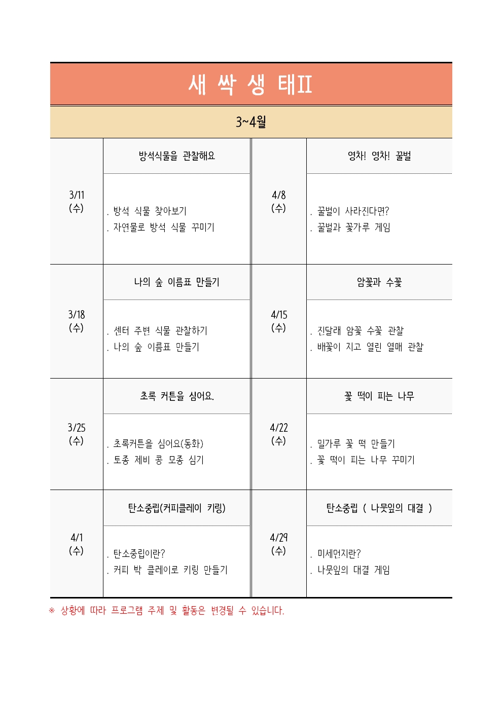 | ±³À°ÀϽà | 2026-03-11(¼ö) , 2026-03-18(¼ö) , 2026-03-25(¼ö) , 2026-04-01(¼ö) 2026-04-08(¼ö) , 2026-04-15(¼ö) , 2026-04-22(¼ö) , 2026-04-29(¼ö) |