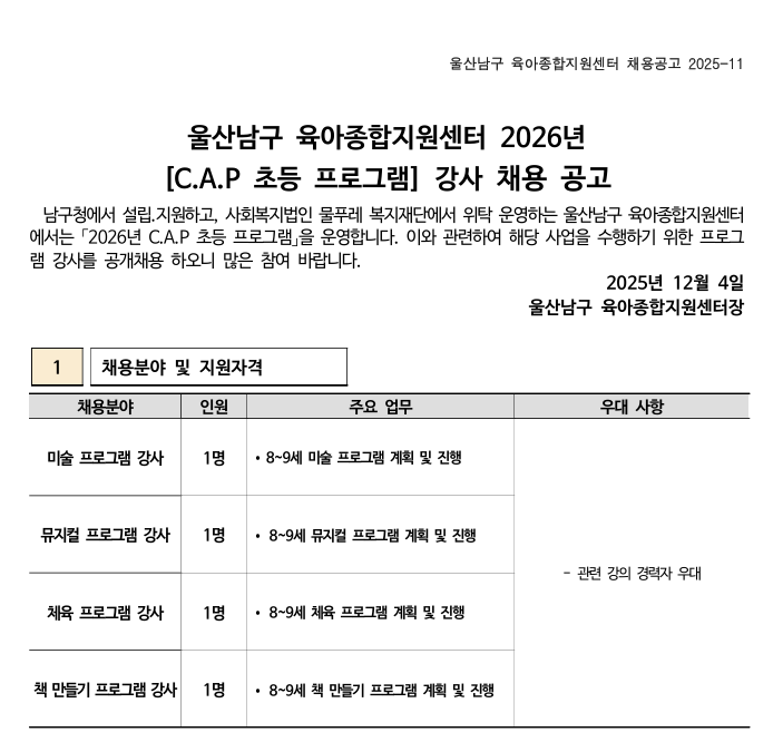 | ÀÌÀü±Û | [ä¿ë] ¿ï»ê ³²±¸À°¾ÆÁ¾ÇÕÁö¿ø¼¾ÅÍ °»ç ä¿ë °ø°í | ||||