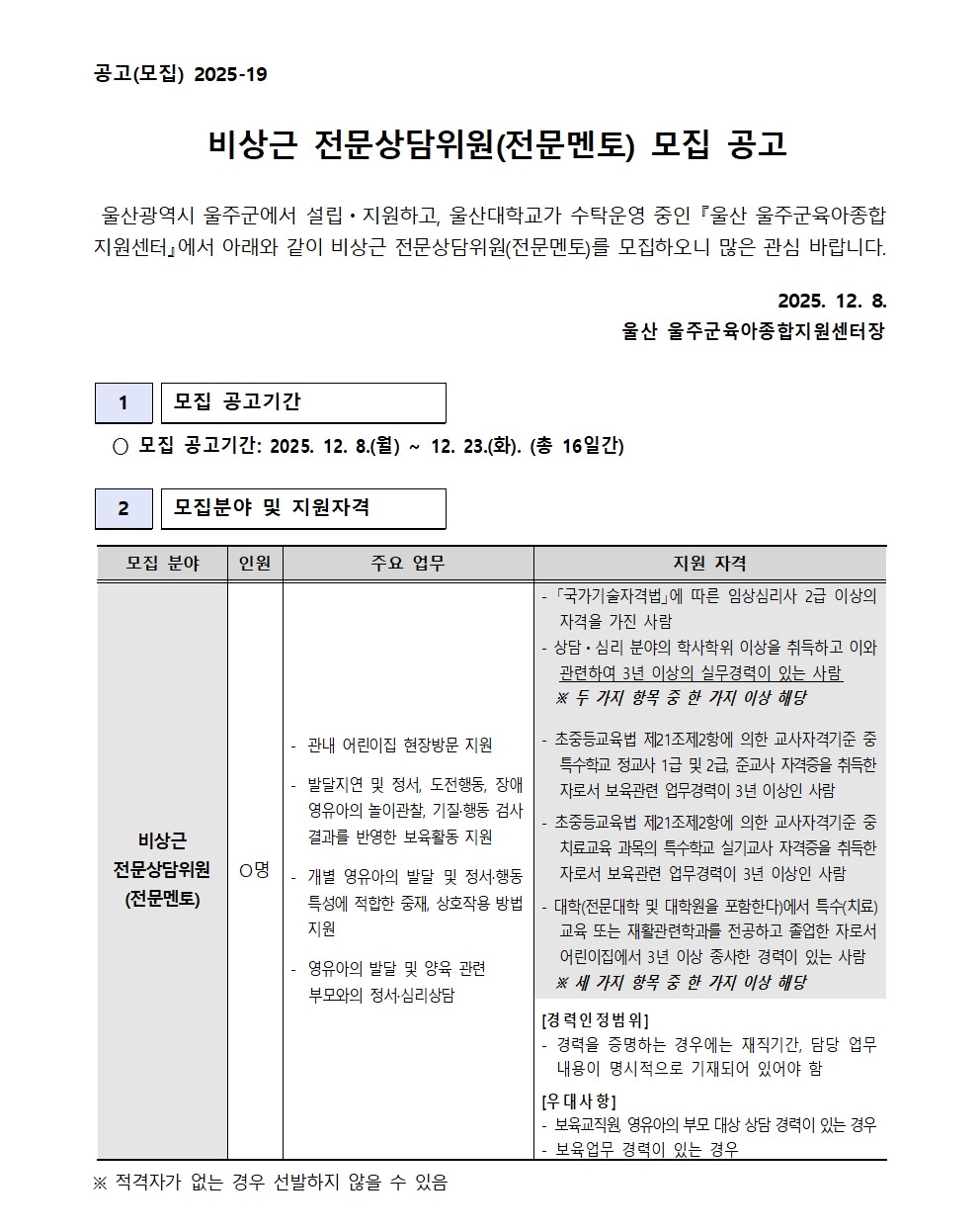 | [¸ðÁý] º» ¼¾ÅÍ ºñ»ó±Ù Àü¹®»ó´ãÀ§¿ø(Àü¹®¸àÅä) ¸ðÁý °ø°í | |||||
