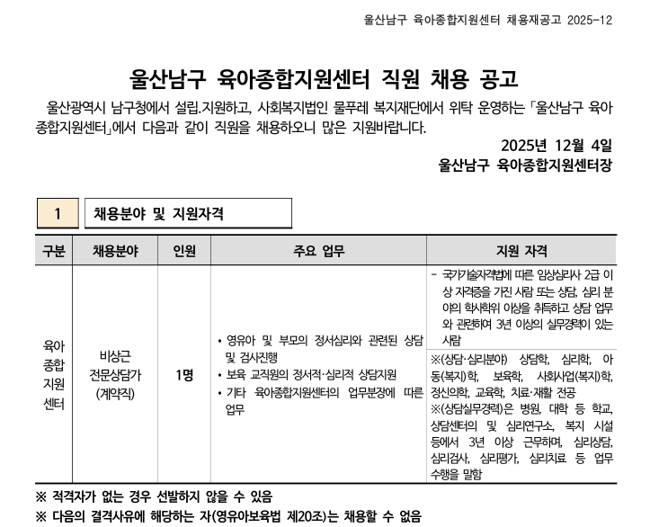 | [ä¿ë] ¿ï»ê ³²±¸À°¾ÆÁ¾ÇÕÁö¿ø¼¾ÅÍ Á÷¿ø ä¿ë °ø°í | |||||