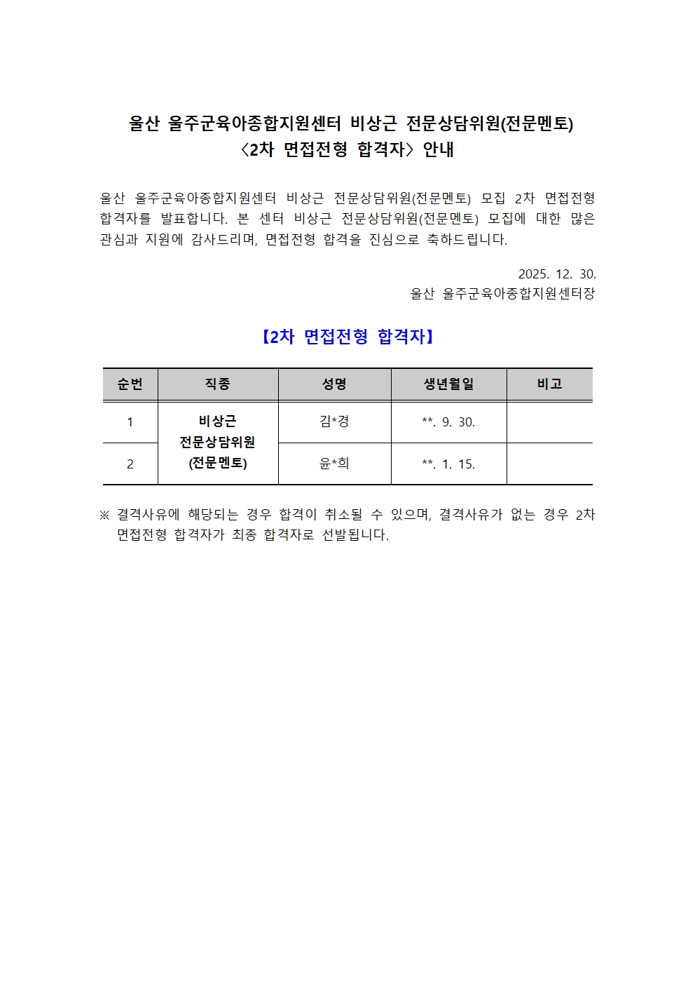 | [¸ðÁý] 2025-19 º» ¼¾ÅÍ ºñ»ó±Ù Àü¹®»ó´ãÀ§¿ø(Àü¹®¸àÅä) [2Â÷ ¸éÁ¢ÀüÇü ÇÕ°ÝÀÚ] ¾È³» | |||||