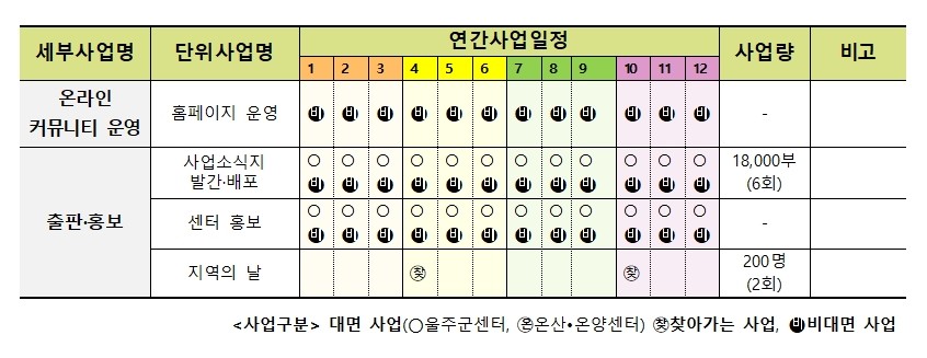 | 2026³â ¿ïÁÖ±ºÀ°¾ÆÁ¾ÇÕÁö¿ø¼¾ÅÍ ¿¬°£ »ç¾÷ °èȹ | |||||