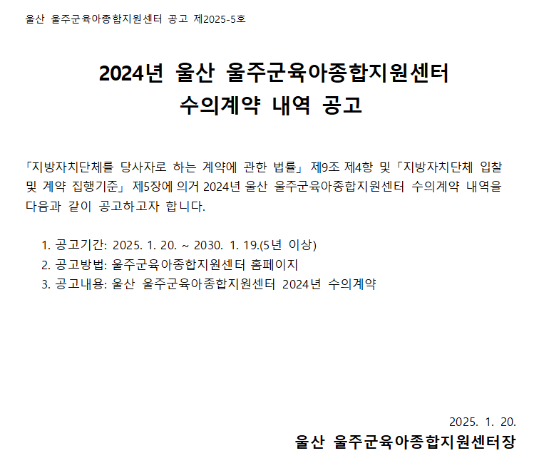 | [°è¾à] 2024³â ¿ï»ê ¿ïÁÖ±ºÀ°¾ÆÁ¾ÇÕÁö¿ø¼¾ÅÍ ¼öÀǰè¾à ³»¿ª °ø°í | |||||