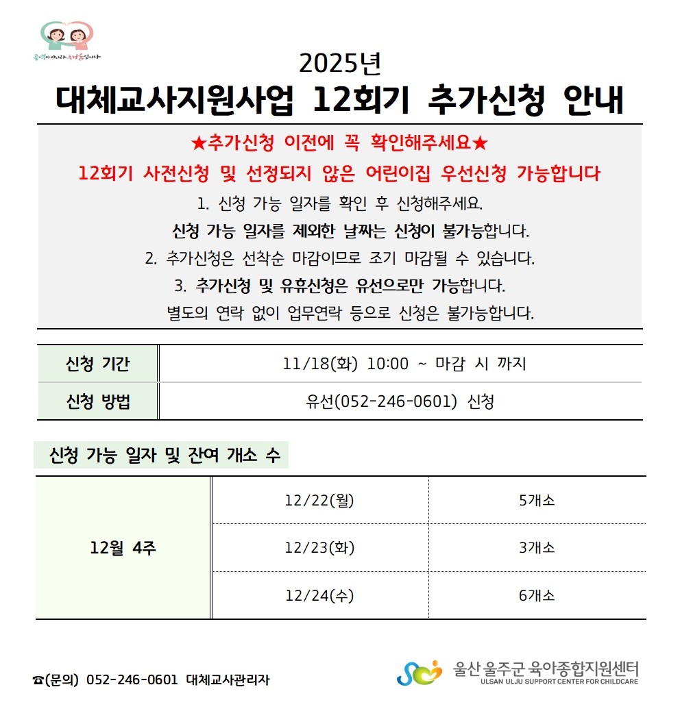 | [Ãß°¡½Åû¾È³»] 2025³â ´ëü±³»çÁö¿ø»ç¾÷ 12ȸ±â Ãß°¡½Åû¾È³» | |||||
