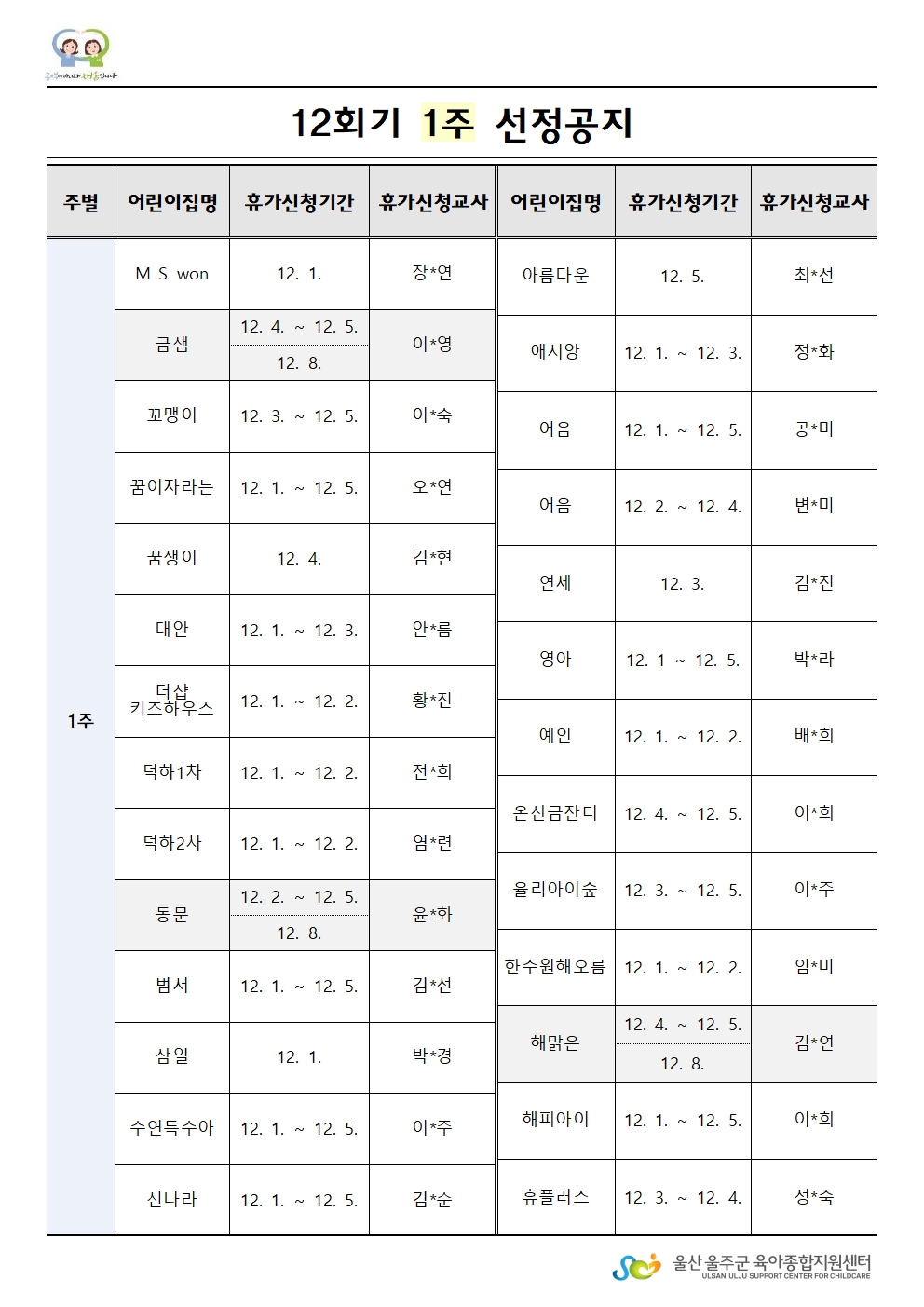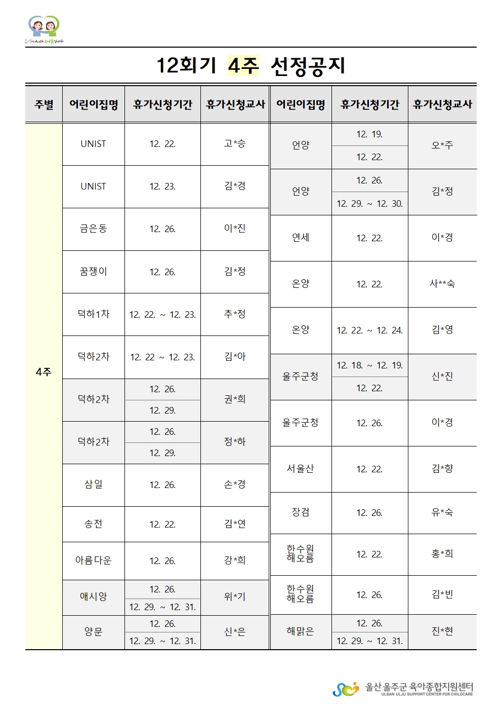 | [¼±Á¤¾î¸°ÀÌÁý°øÁö] 2025³â ´ëü±³»çÁö¿ø»ç¾÷ 12ȸ±â ¼±Á¤¾î¸°ÀÌÁý °øÁö | |||||
