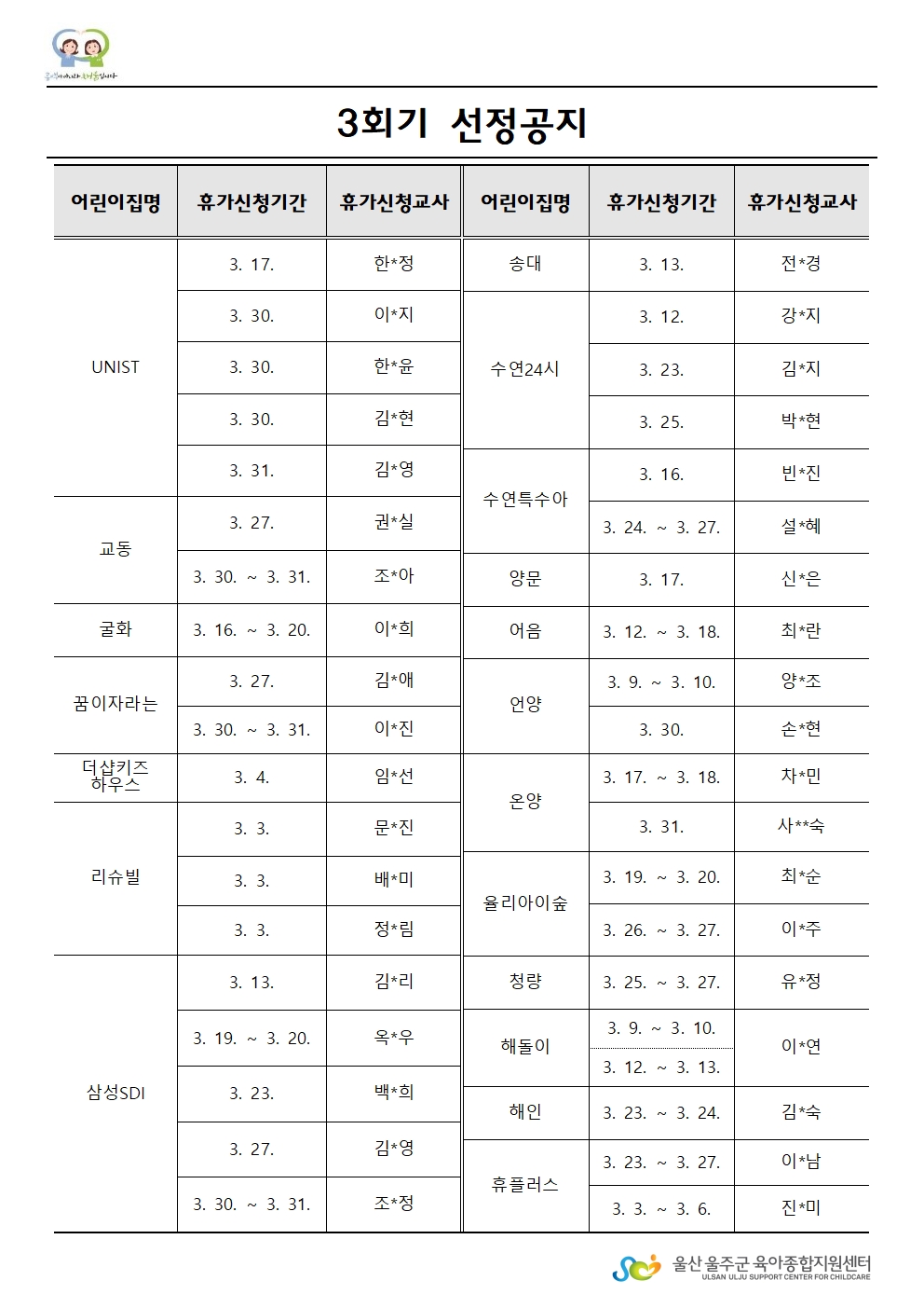 | [¼±Á¤¾î¸°ÀÌÁý°øÁö] 2026³â ´ëü±³»çÁö¿ø»ç¾÷ 3ȸ±â ¼±Á¤¾î¸°ÀÌÁý °øÁö | |||||