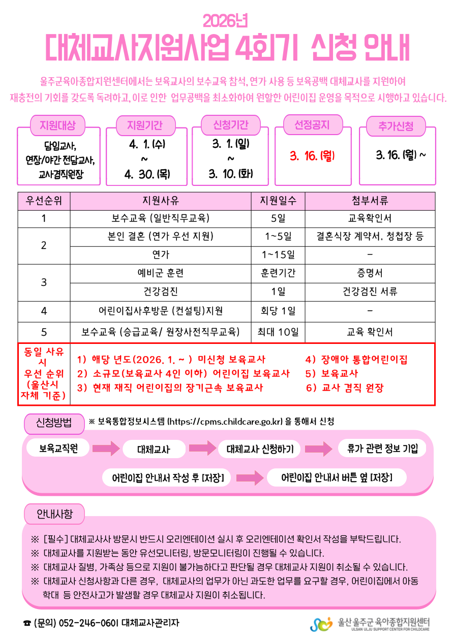 | [½Åû¾È³»] 2026³â ´ëü±³»ç Áö¿ø»ç¾÷ 4ȸ±â ½Åû¾È³» | |||||