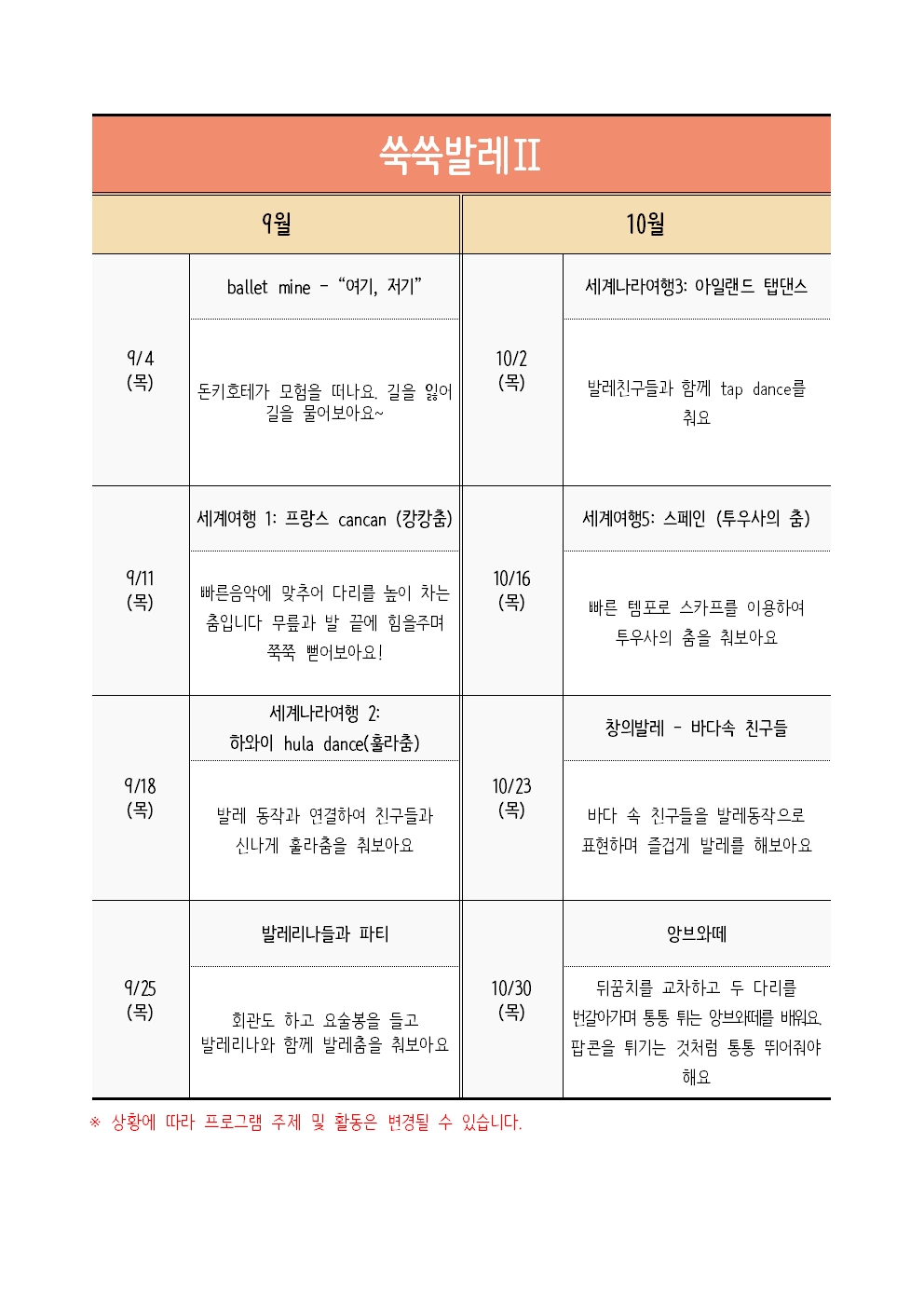 | ±³À°ÀϽà | 2025-09-04(¸ñ) , 2025-09-11(¸ñ) , 2025-09-18(¸ñ) , 2025-09-25(¸ñ) 2025-10-02(¸ñ) , 2025-10-16(¸ñ) , 2025-10-23(¸ñ) , 2025-10-30(¸ñ) |