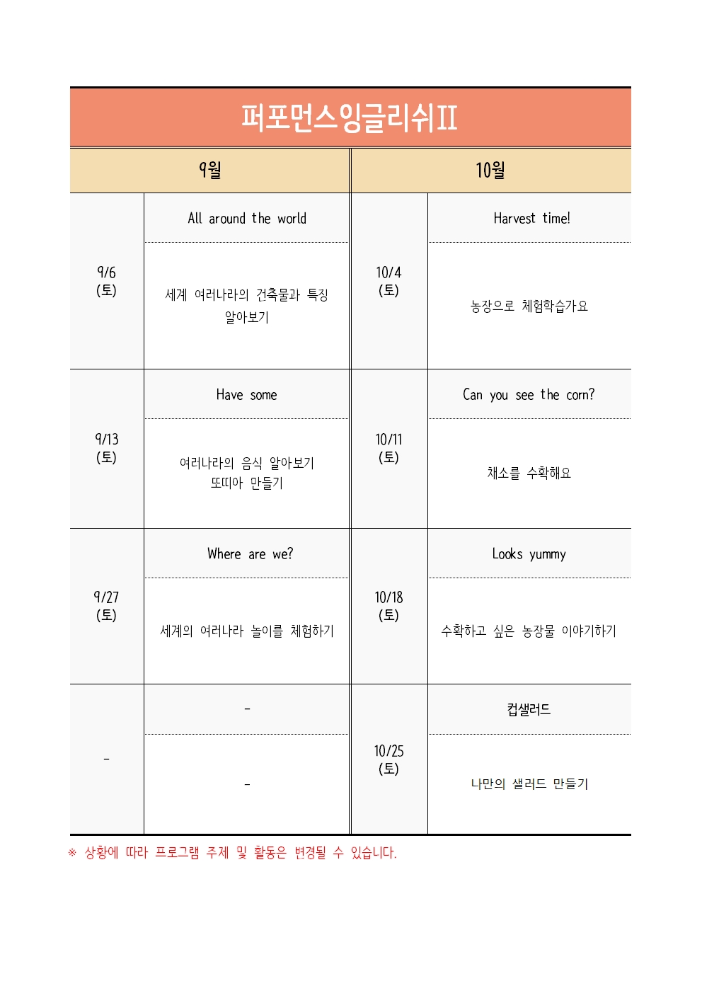 | ±³À°ÀϽà | 2025-09-06(Åä) , 2025-09-13(Åä) , 2025-09-27(Åä) , 2025-10-04(Åä) 2025-10-11(Åä) , 2025-10-18(Åä) , 2025-10-25(Åä) |