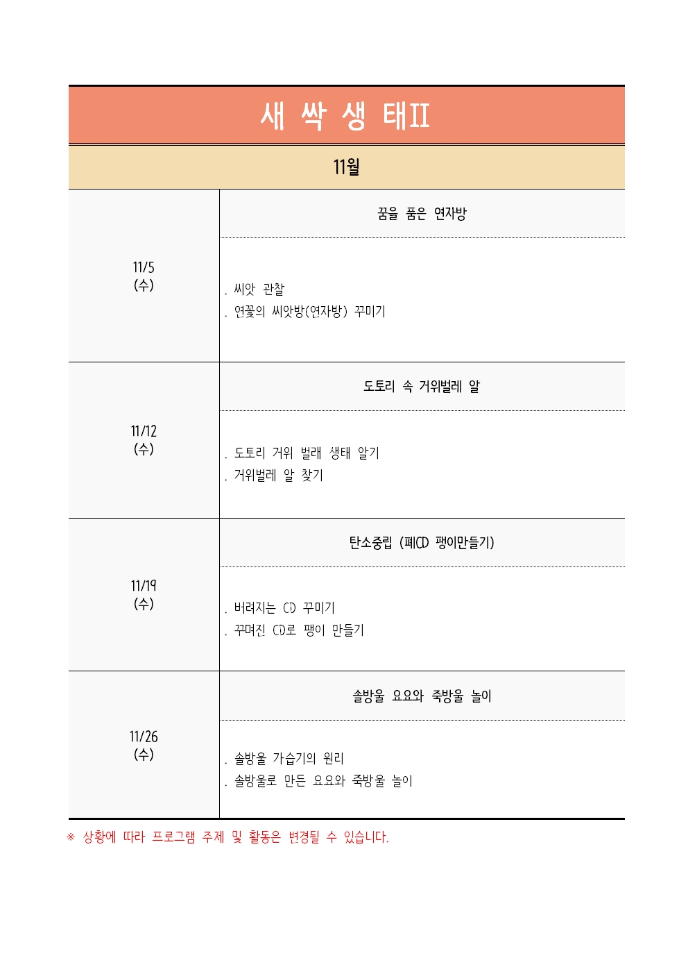 | ±³À°ÀϽà | 2025-11-05(¼ö) , 2025-11-12(¼ö) , 2025-11-19(¼ö) , 2025-11-26(¼ö) | ||