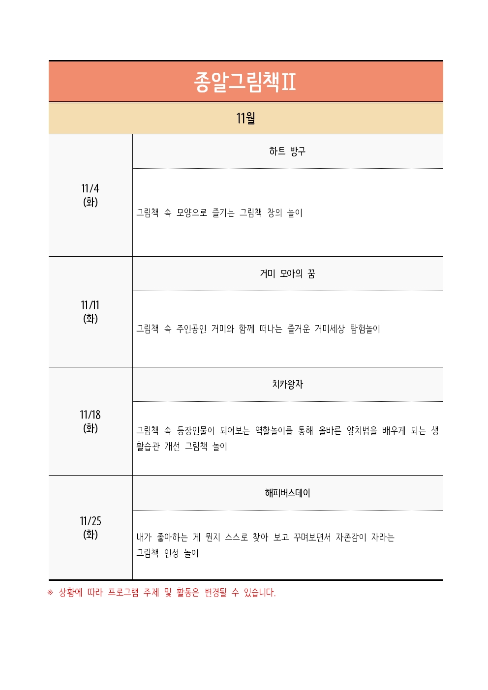 | ±³À°ÀϽà | 2025-11-04(È) , 2025-11-11(È) , 2025-11-18(È) , 2025-11-25(È) | ||