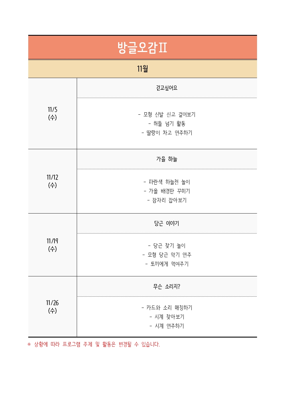 | ±³À°ÀϽà | 2025-11-05(¼ö) , 2025-11-12(¼ö) , 2025-11-19(¼ö) , 2025-11-26(¼ö) | ||