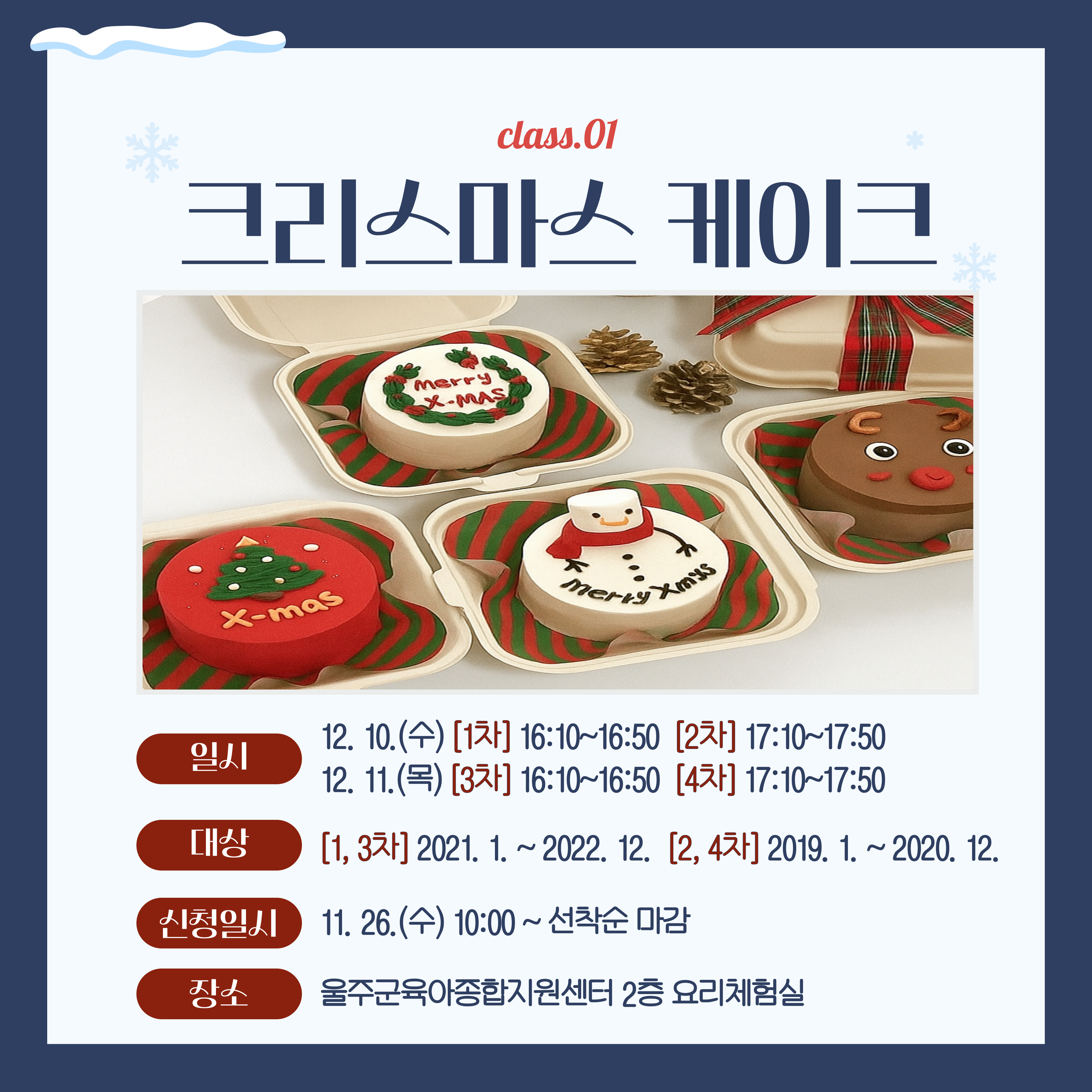 | ±³À°Àå¼Ò | ¿ïÁÖ±º¼¾ÅÍ 2Ãþ ¿ä¸®Ã¼Çè½Ç | ±³À°´ë»ó | 2021-01-01~2022-12-31 |