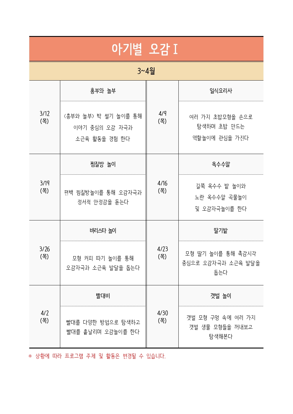 [ºÎ¸ðÀÚ³à³îÀÌ] [3~4¿ù]¾Æ±âº° ¿À°¨¥°(13:30~)   ![]() |