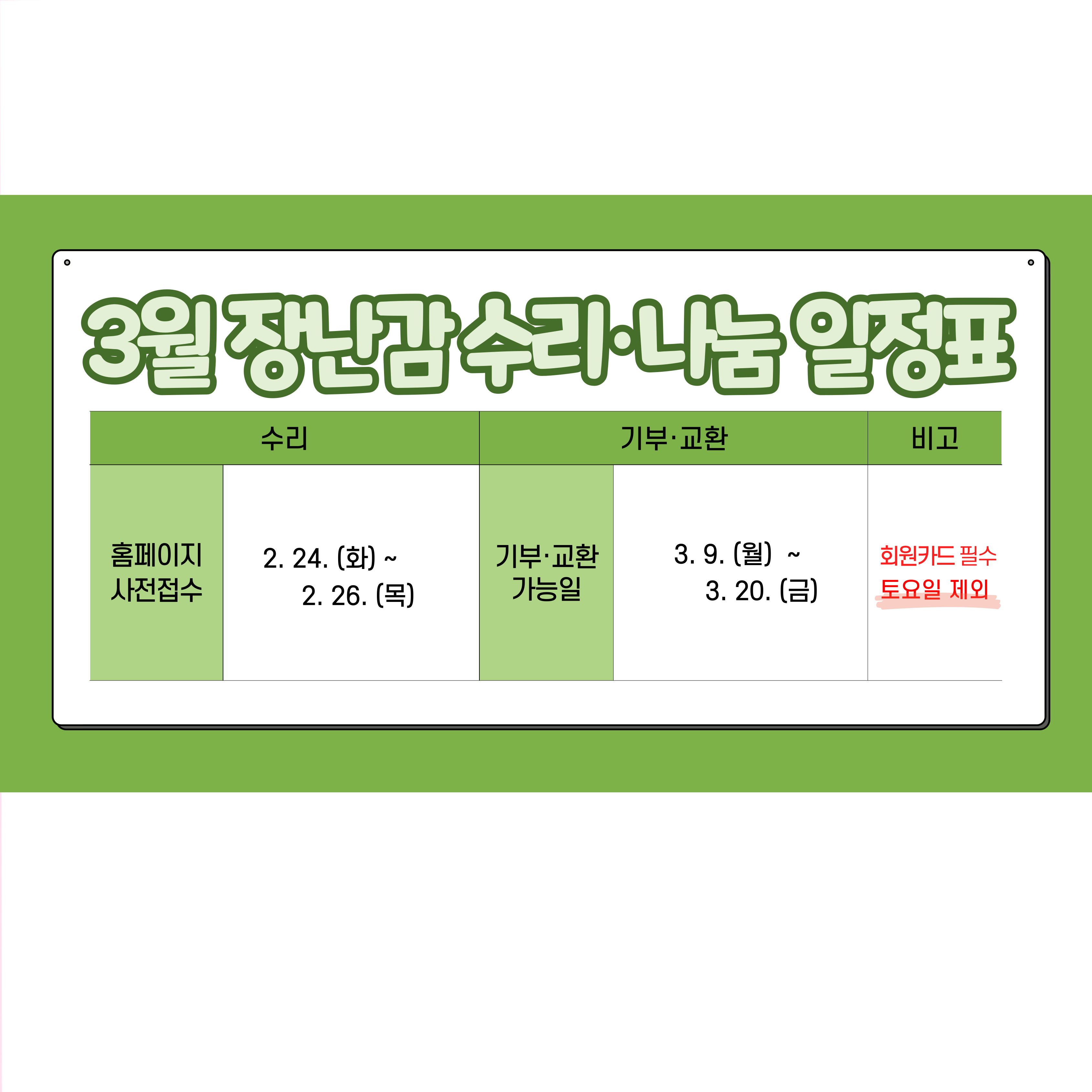 | [±âŸ±³À°] [Àå³°¨µµ¼°ü] 26³â 3¿ù ¼ö¸®¡¤³ª´® »çÀü Á¢¼ö | |||