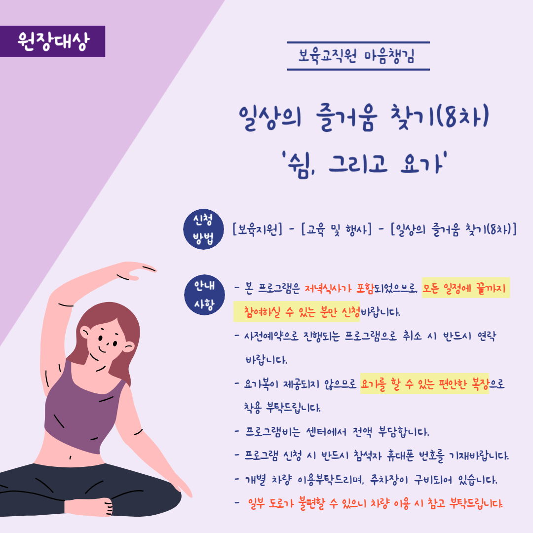 <º¸À°±³Á÷¿ø ¸¶À½Ã¬±è> ÀÏ»óÀÇ Áñ°Å¿ò ã±â(8Â÷) - ½°, ±×¸®°í ¿ä°¡ | |||||