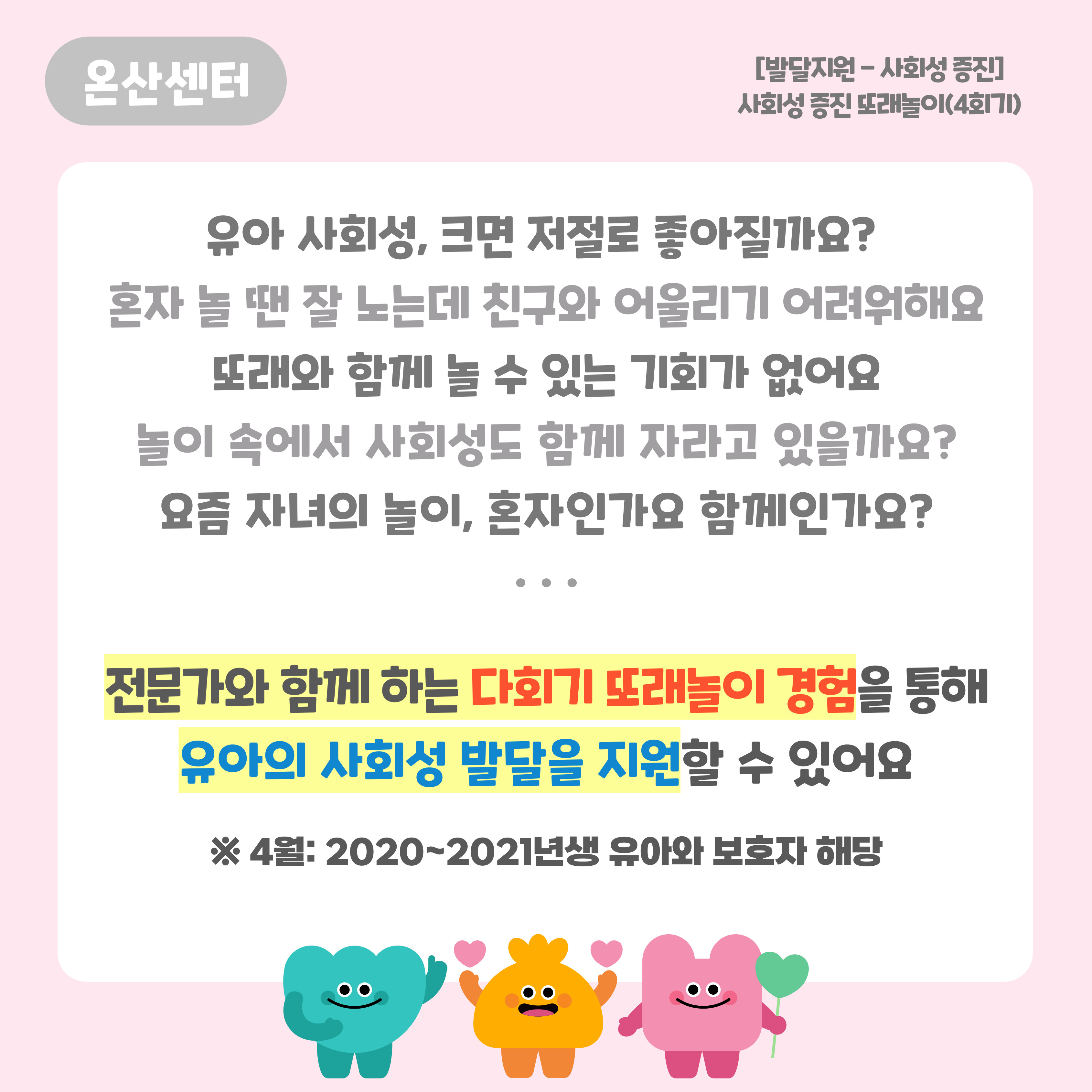 | [¹ß´ÞÁö¿ø-»çȸ¼º ÁõÁø] (¡Ú½Å±Ô) »çȸ¼º ÁõÁø ¶Ç·¡³îÀÌ(20, 21³â»ý À¯¾Æ ´ë»ó) | |||||