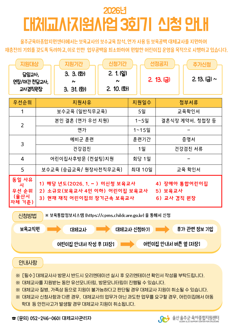 | [½Åû¾È³»] 2026³â ´ëü±³»ç Áö¿ø»ç¾÷ 3ȸ±â ½Åû¾È³» | |||||