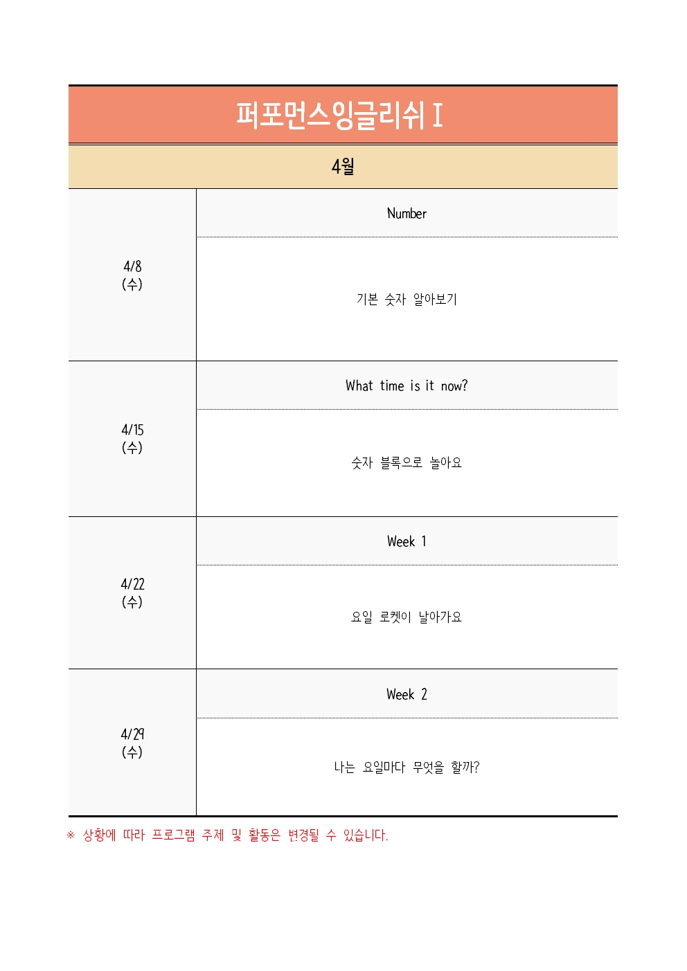 | ±³À°ÀϽà | 2026-04-01(¼ö) , 2026-04-08(¼ö) , 2026-04-15(¼ö) , 2026-04-22(¼ö) 2026-04-29(¼ö) |
