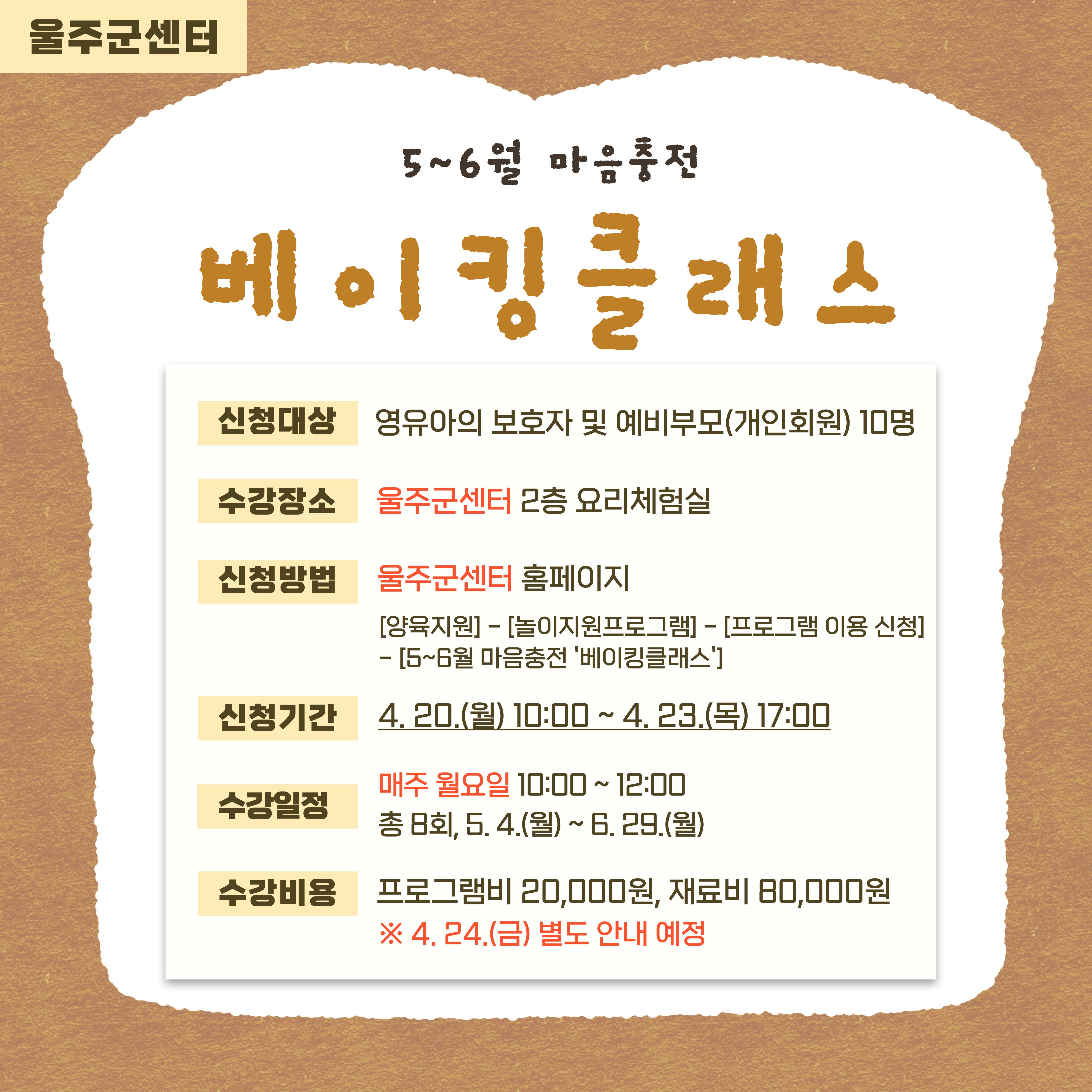 | [¸¶À½Ã¬±è] <¸¶À½ÃæÀü> 5~6¿ù º£ÀÌÅ· Ŭ·¡½º | |||