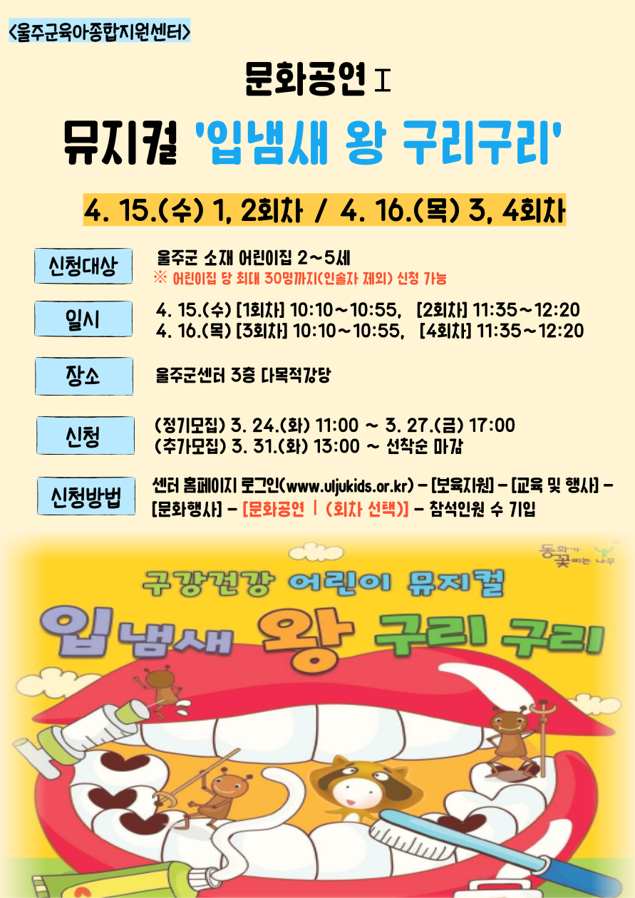 | [¹ÂÁöÄÃ] (1ȸÂ÷) ¹®È°ø¿¬I - ¹ÂÁöÄà 'ÀÔ³¿»õ ¿Õ ±¸¸®±¸¸®' (10:10~10:55) | |||