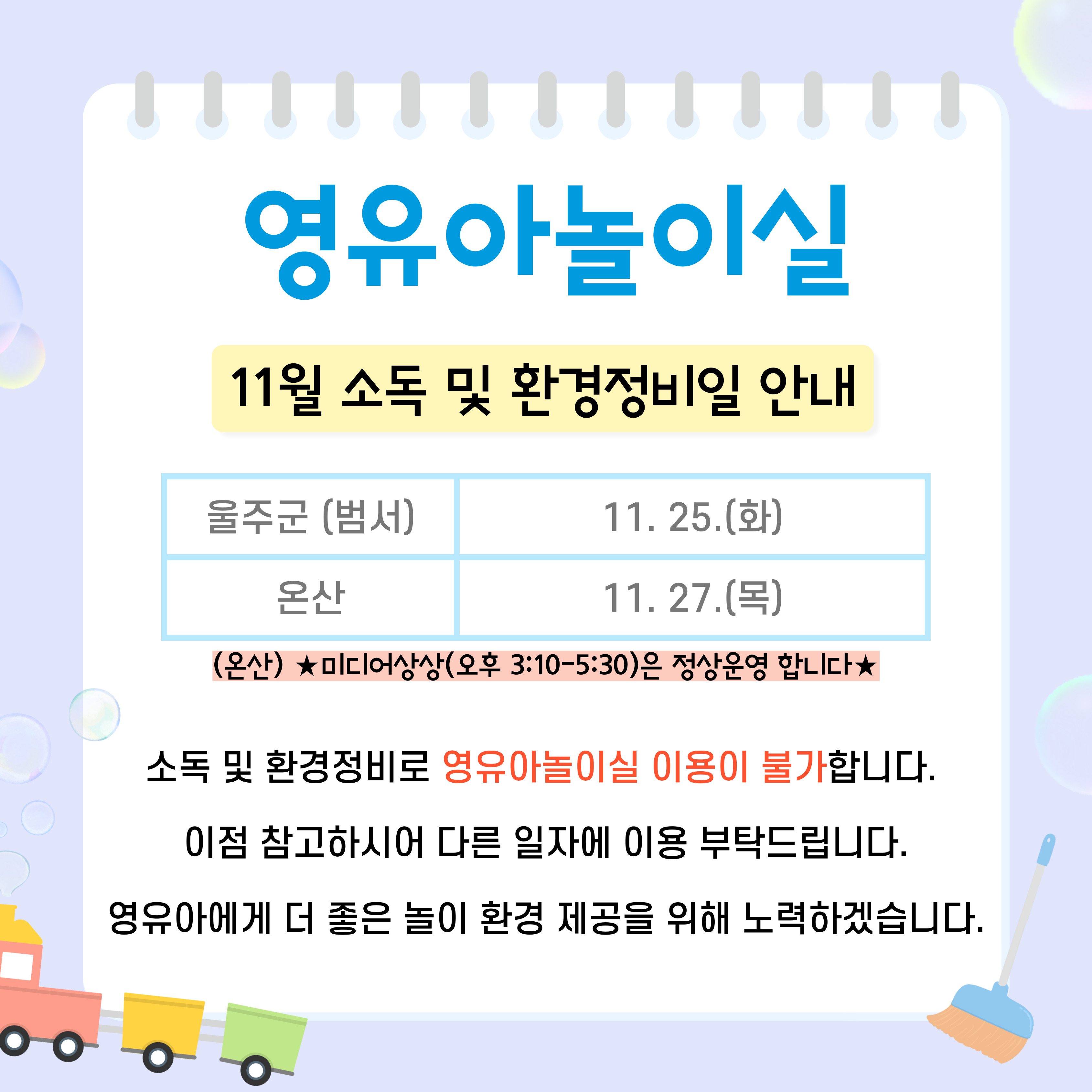 [¿Â»ê] ¿µÀ¯¾Æ³îÀÌ½Ç 11¿ù ¼Òµ¶ ¹× ȯ°æÁ¤ºñÀÏ
