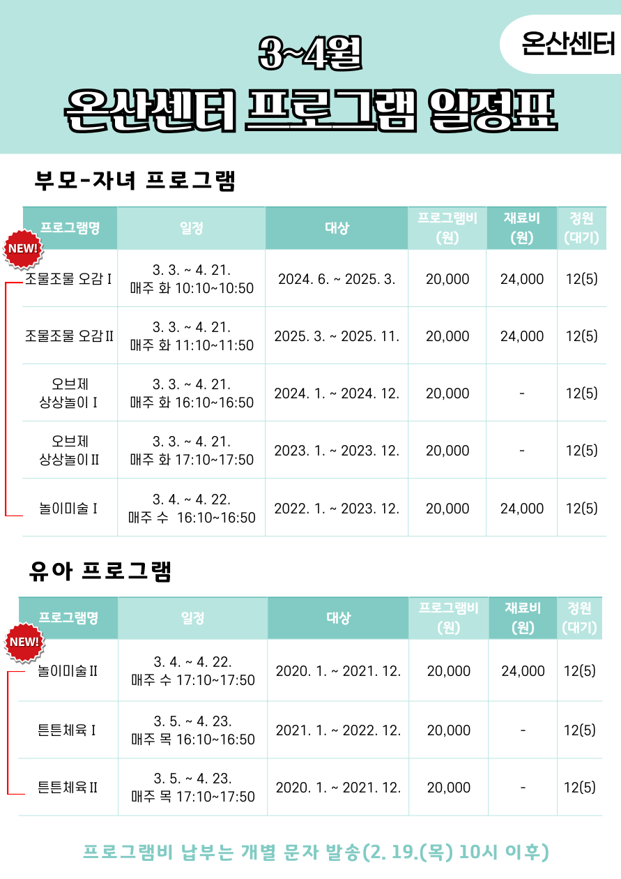 [¿Â»ê/¿Â¾ç] 3~4¿ù ³îÀÌÁö¿øÇÁ·Î±×·¥ Á¢¼ö ¾È³»