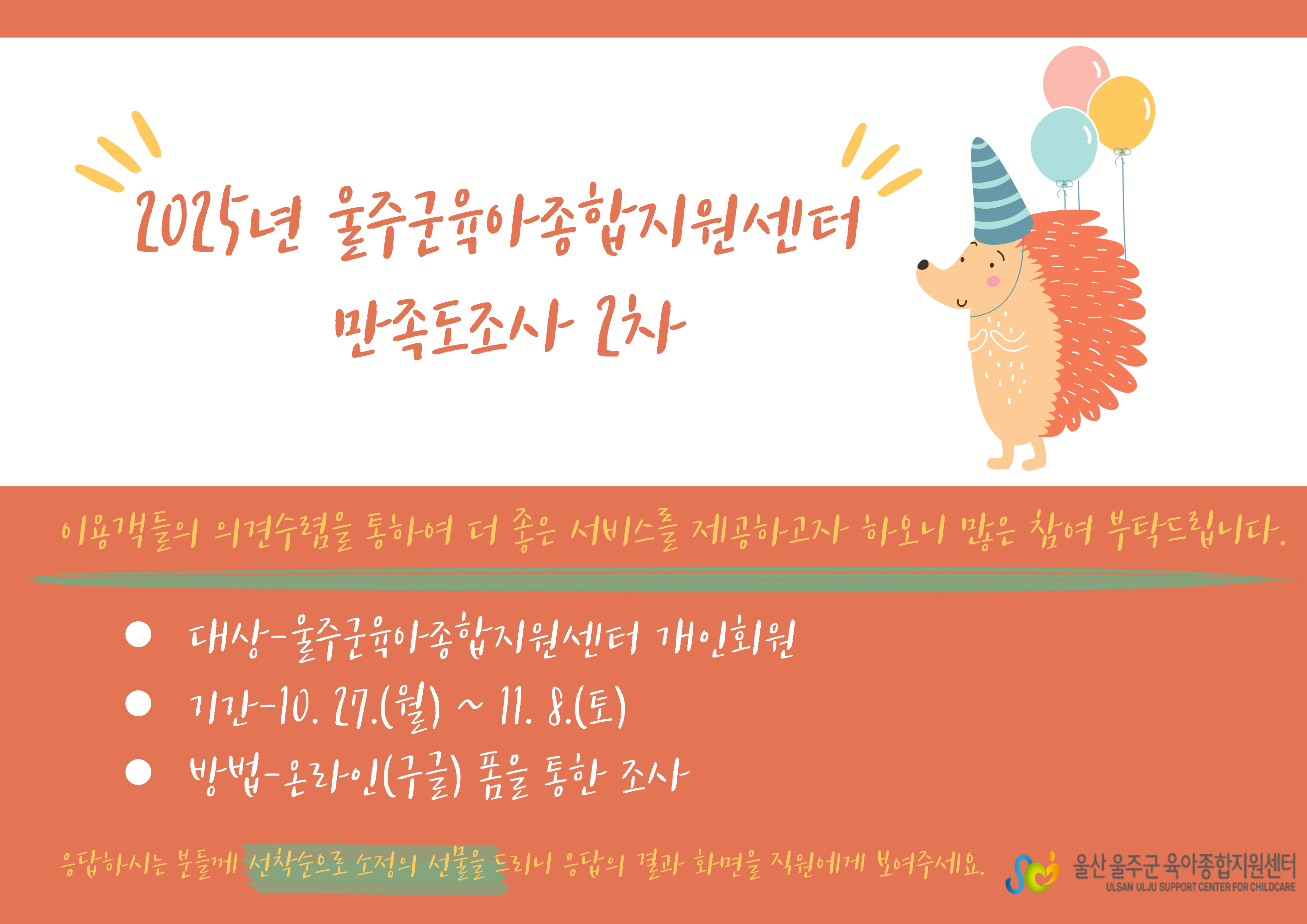 [¸¸Á·µµÁ¶»ç] 2025³â ¿ï»ê ¿ïÁÖ±ºÀ°¾ÆÁ¾ÇÕÁö¿ø¼¾ÅÍ ¸¸Á·µµÁ¶»ç 2Â÷ ½Ç½Ã ¾È³» | |