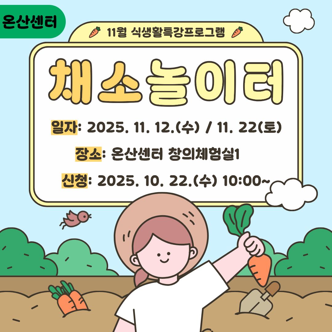 [¿Â»ê] 11¿ù ½Ä»ýȰƯ° 'ä¼Ò ³îÀÌÅÍ'