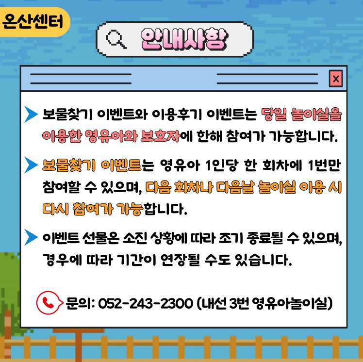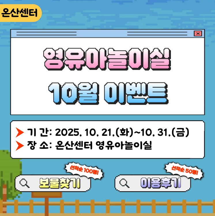 [¿Â»ê] ¿µÀ¯¾Æ³îÀÌ½Ç º¸¹°Ã£±â&ÀÌ¿ëÈıâ À̺¥Æ® | |