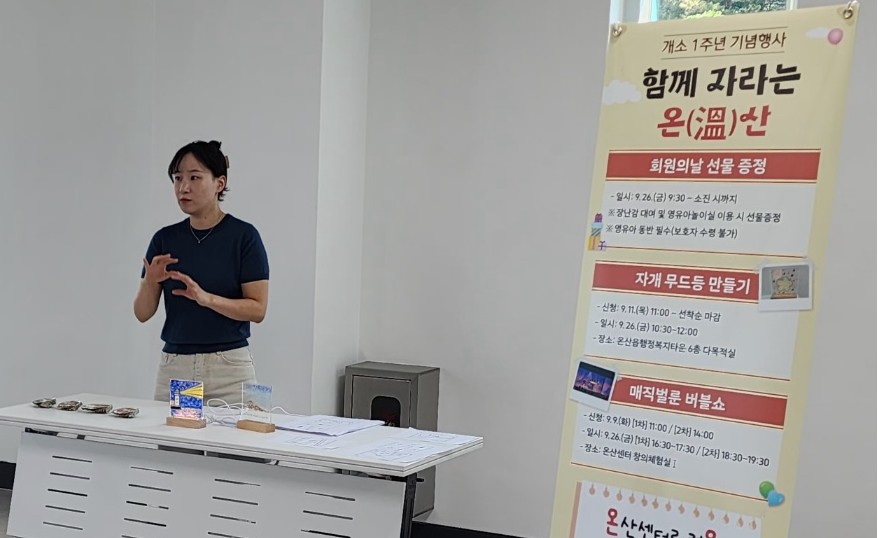 [¿Â»ê] ¿Â»ê¼¾ÅÍ °³¼Ò 1Áֳ⠱â³äÇà»ç - ÀÚ°³ ¹«µåµî ¸¸µé±â | |