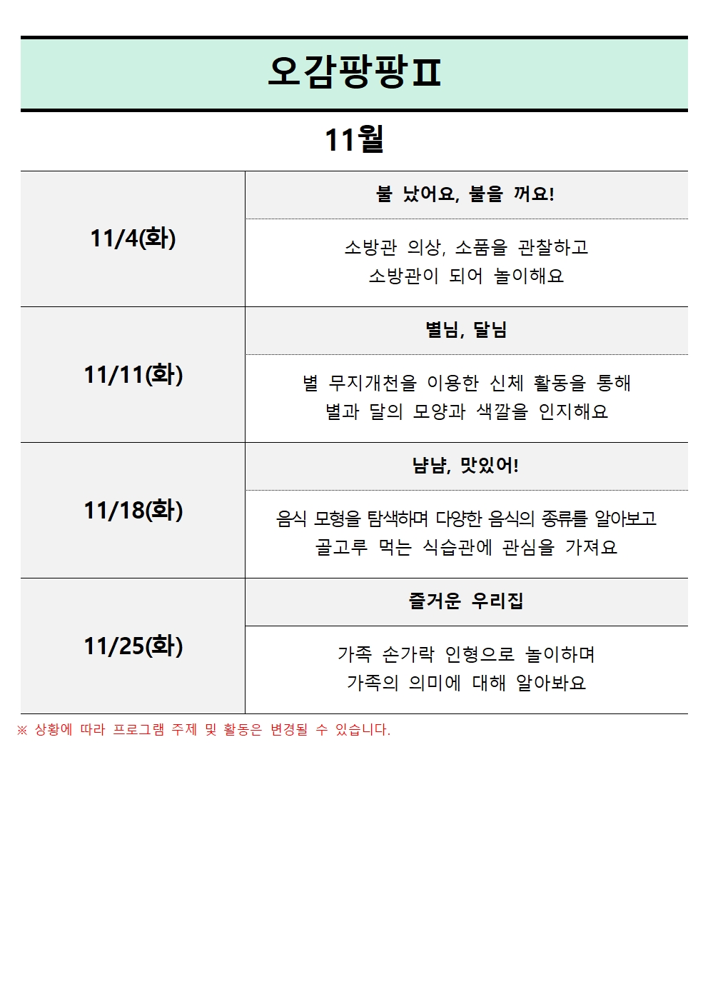 | ±³À°ÀϽà | 2025-11-04(È) , 2025-11-11(È) , 2025-11-18(È) , 2025-11-25(È) | ||