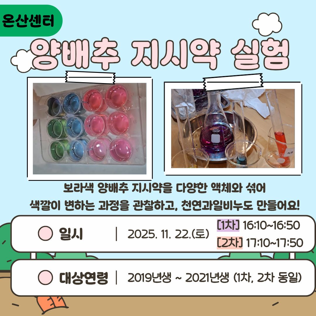 | [¿Â»ê¼¾ÅÍ] [11¿ù ½Ä»ýȰƯ°] ¾ç¹èÃß Áö½Ã¾à ½ÇÇè (19³â»ý~21³â»ý) 17:10~17:50 | |||