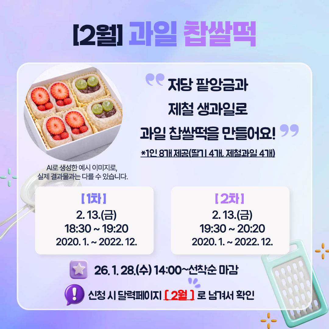| [¿Â»ê¼¾ÅÍ] [¿ä¸®Æ¯°]18:30~°úÀÏ Âý½Ò¶± ¸¸µé±â(2020~2022³â»ý) | |||