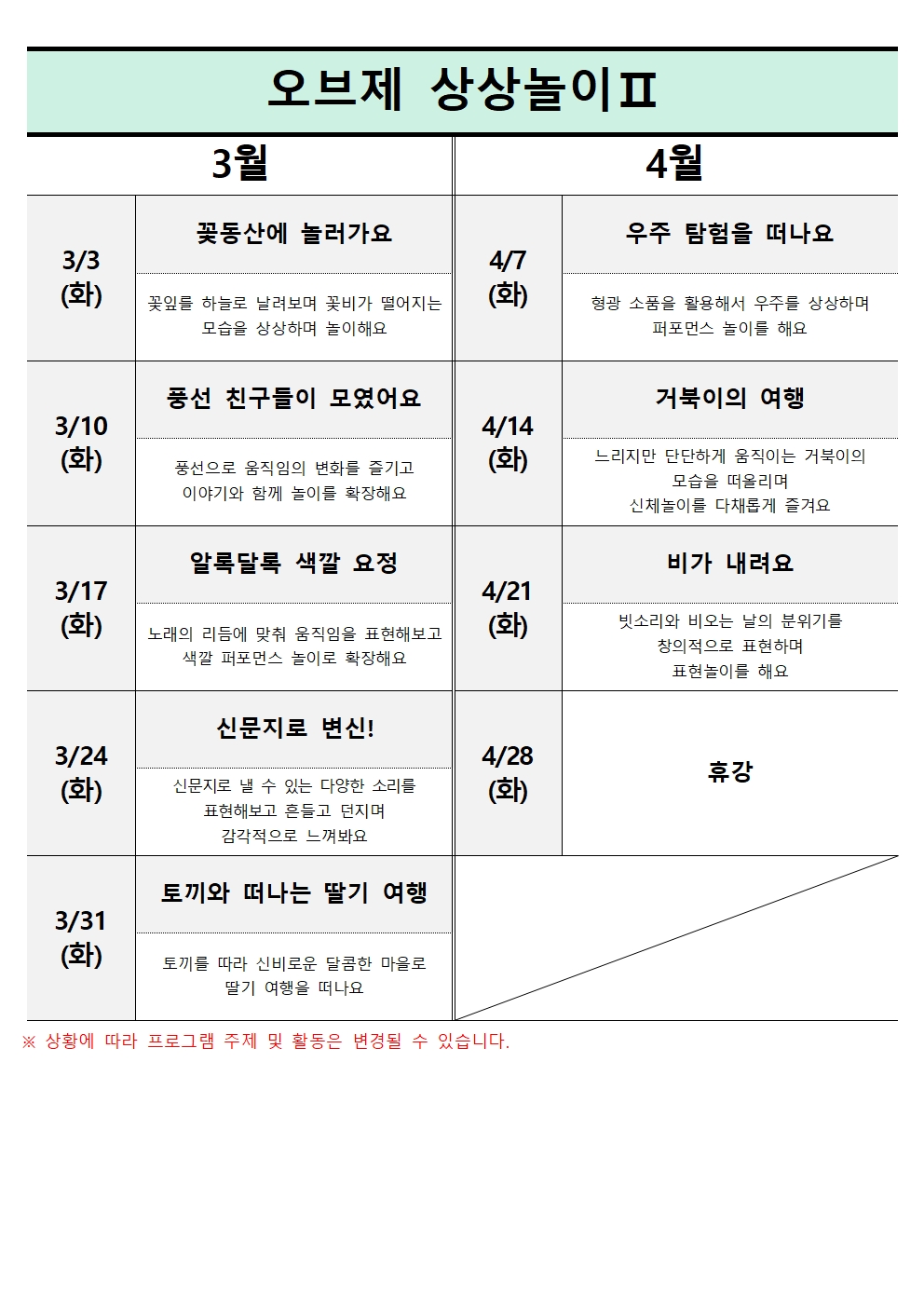 | [¿Â»ê¼¾ÅÍ] [3,4¿ù] ¿ÀºêÁ¦ »ó»ó³îÀÌ¥±(2023. 1. ~ 2023. 12.) 17:10~ | |||