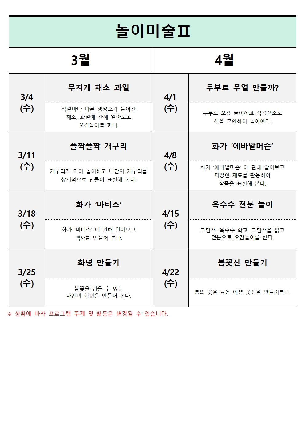 | ±³À°ÀϽà | 2026-03-04(¼ö) , 2026-03-11(¼ö) , 2026-03-18(¼ö) , 2026-03-25(¼ö) 2026-04-01(¼ö) , 2026-04-08(¼ö) , 2026-04-15(¼ö) , 2026-04-22(¼ö) |