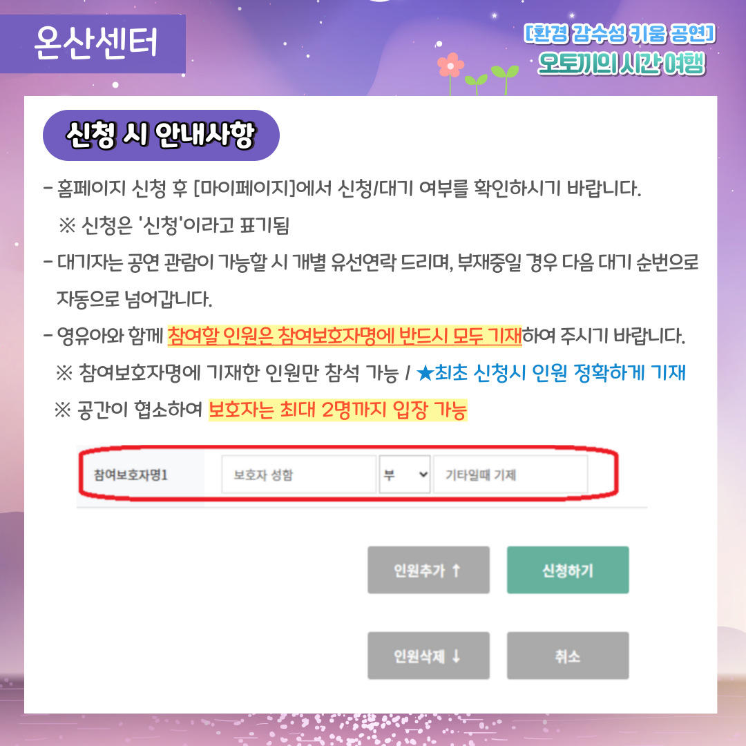 [¹®È°ø¿¬] [¿Â»ê] (2Â÷) ȯ°æ °¨¼ö¼º Ű¿ò °ø¿¬ - ¿ÀÅä³¢ÀÇ ½Ã°£ ¿©Çà | |||