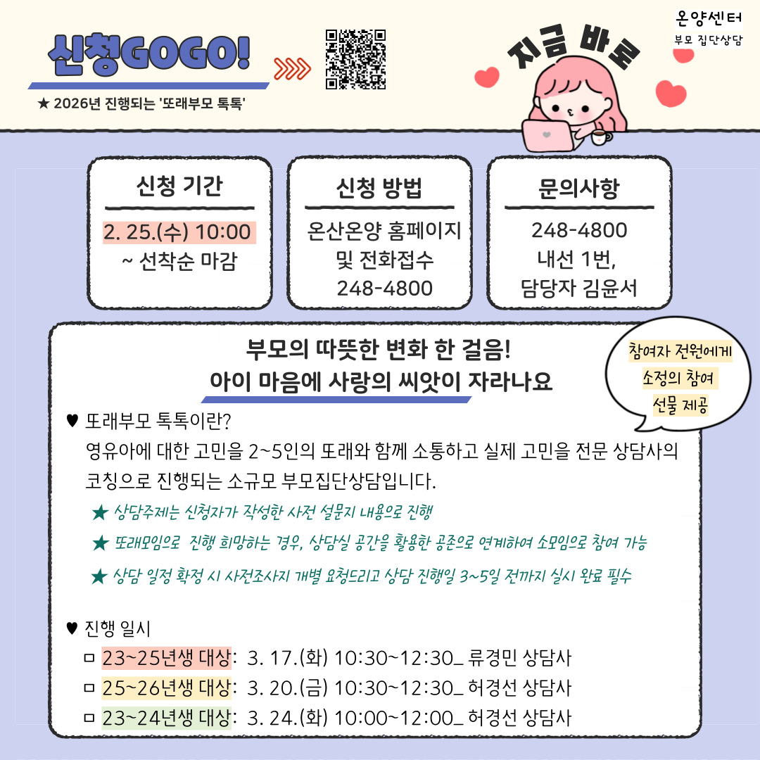 | ±³À°Àå¼Ò | ¿Â¾ç¼¾ÅÍ »ó´ã½Ç | ±³À°´ë»ó | 2023-01-01~2025-12-31 |