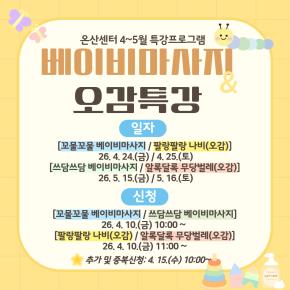 ¼¾ÅÍ»ç¾÷ ¼Ò½Ä ÀÌÀü ´ÙÀ½ ¼¾ÅÍ»ç¾÷¼Ò½Ä ´õº¸±â [¿Â»ê/¿Â¾ç] 5~6¿ù ³îÀÌÁö¿øÇÁ·Î±×·¥ Á¢¼ö [¿Â»ê] 4~5¿ù º£À̺ñ¸¶»çÁö&¿À°¨ Ư°ÇÁ·Î±×·¥ <¿Â¾ç-ºÎ¸ð»ó´ã> 4¿ù ºÎ¸ð»ó´ã Ãß°¡¸ðÁý [¿Â»ê] ±àÁ¤ »óÈ£ÀÛ¿ë ÄÚĪ [¿Â¾ç] 2026³â 5¿ù µ¹¹éÀÏ»ó ´ë¿© [¿Â¾ç] 2026³â 5¿ù ¿¡¾î¹Ù¿î½º ´ë¿© [¿Â»ê] ۵æÅ°µæ ¹®È°ø¿¬ ¡®±êÅÐÇǸ®¡¯ °¡Á· ¹ÂÁöÄà <°øÅë ºÎ¸ð±³À°> 4¿ù °øÅë ºÎ¸ð±³À° <°øÅë ºÎ¸ð±³À°> 4¿ù ºÎ¸ðÀÚ³à üÇèȰµ¿ [¿Â¾ç] »ýÈÄÉÀÌÅ©&·¹¸óû ¿ä¸®